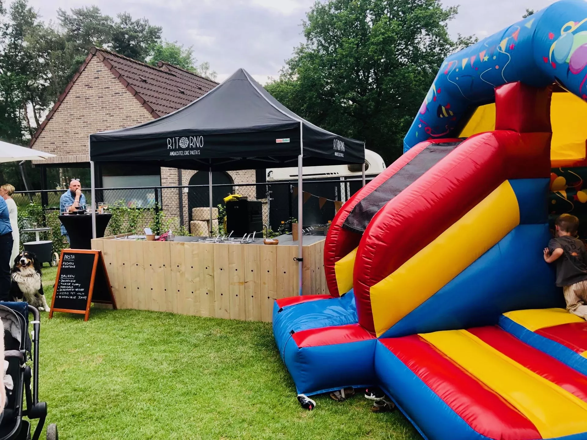 Pizza- en pastacatering op locatie, perfect voor tuinfeesten, verjaardagen, communies, lentefeesten, jubilea en huwelijken.